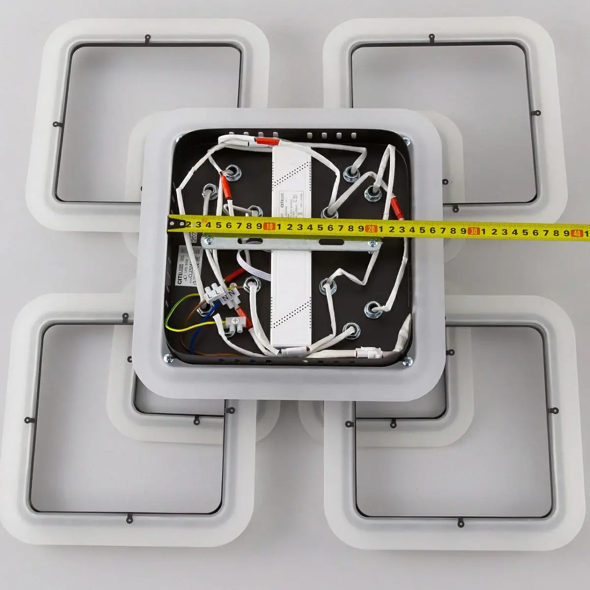 Установите люстру на пластину, зафиксируйте крепёжными элементами.
